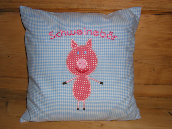 Kissen "Schweinebär" Modellbeispiel nach Kinderzeichnung, auch nach Zeichnung von Ihrem Kind möglich 36 cm x 36 cm Art.-Nr. 146 |